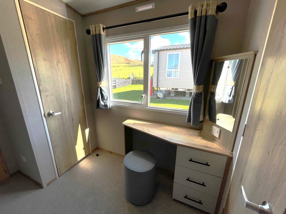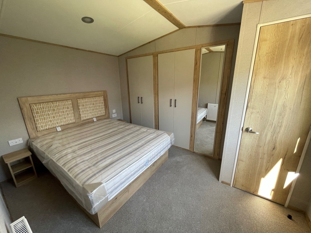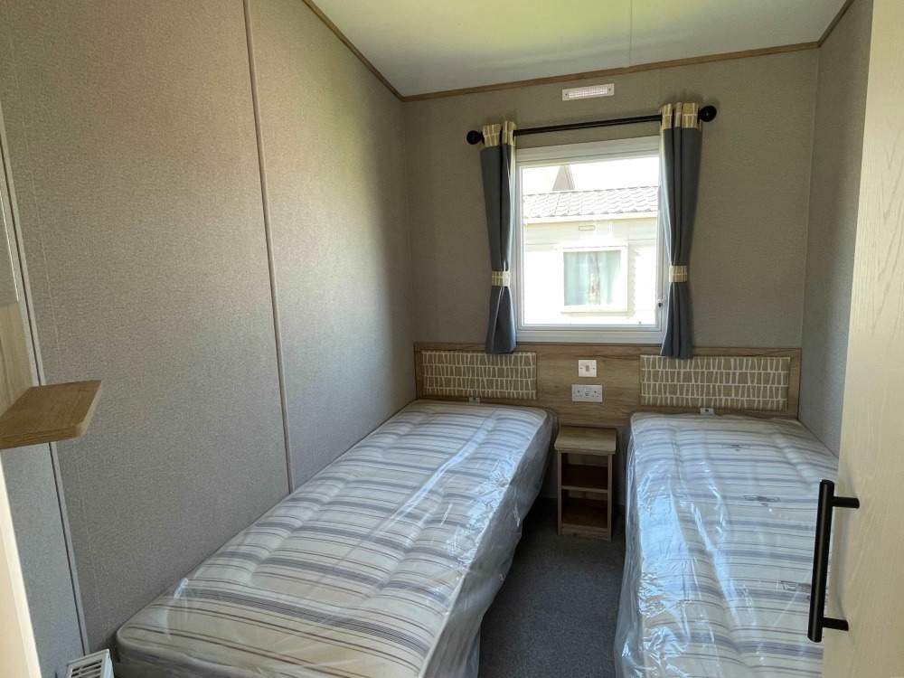 The new 2025 ABI Goscar 36ft x 12ft / 2 bedroom holiday caravan with fully galvanised chassis, winter premium pack (inc. double glazing & central heating), integrated fridge freezer, integrated microwave, sofa bed, free standing 2ft 3” twin beds, a king size lift-up bed in the main bedroom and ensuite toilet.